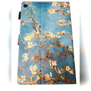 Beautiful apricot blossoms form a lacy pattern against a deep blue sky -- this tablet cover is lovely, as well as a good utility item. It has slots for your driver's license, credit cards, photos and notes if you wish to use it as an expanded wallet or notebook. Beautiful construction is an essential detail in a business item and this won't disappoint.