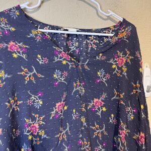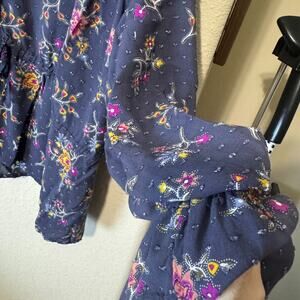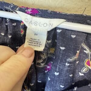 CASLON 3X Grey Floral Blouse Peasant Top Balloon Sleeve Romantic Cottagecore