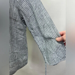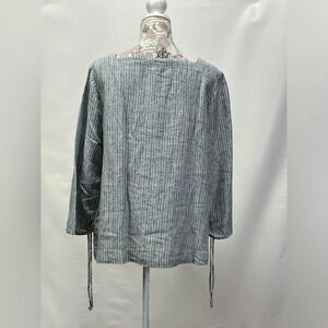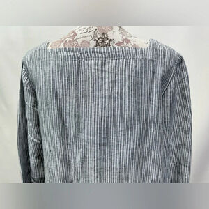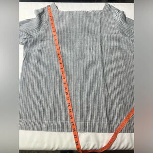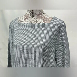 Blue and white striped linen blouse from Caslon, size L.  Top has square neckline,  3/4 sleeve and hits at waist.