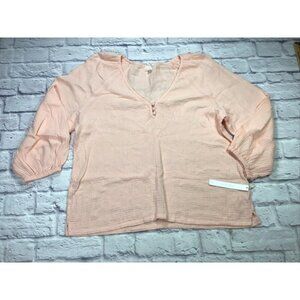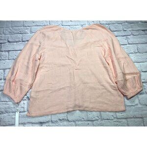 CASLON Long Sleeve Lightweight Gauze Blouse Balloon Sleeves V-Neck Pink Medium