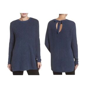 CASLON | NWOT BLUE COTTON RIBBED TIE-BACK TUNIC SWEATER | EXTRA SMALL