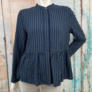 CASLON Navy & White Striped Peplum Collarless Button Down Shirt