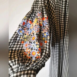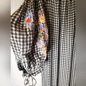 CASLON Nordstrom Wmn's black white gingham embroidered bubble sleeves dress, 1X