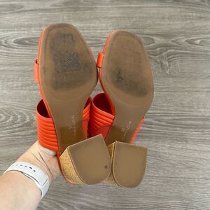 CASLON Orange Leather Upper Lamia Square-Toe Block-Heel Sandals Size 7