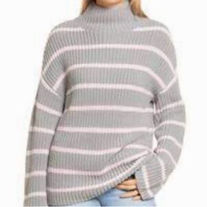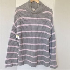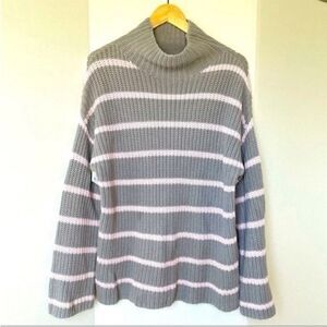 CASLON Shaker Knit Pullover Sweater Grey Pink Stripes Mock Neck