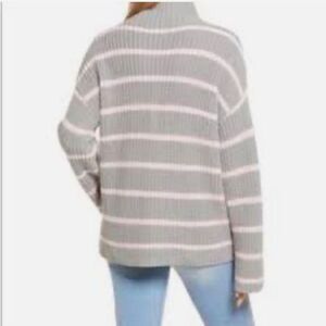 CASLON $69 Shaker Mock Neck Sweater Gray Pink Stripe