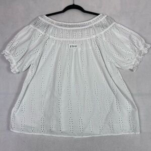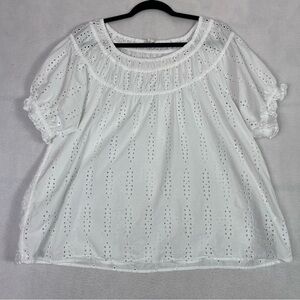 CASLON White Eyelet Cotton Top Short Sleeve Blouse