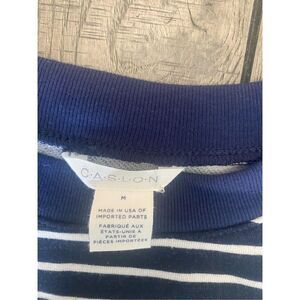 Woman’s CASLON sweatshirt NWT navy blue and white striped . Oversized size medium Super soft ! Bin R