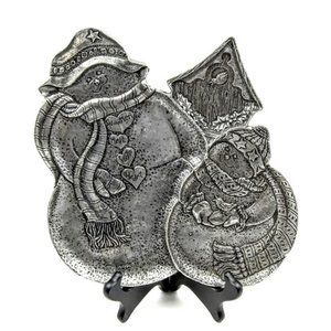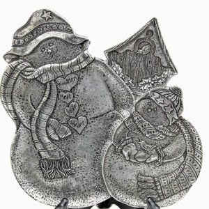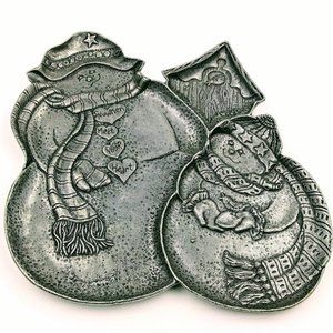 *CAST ALUMINUM *SNOWMAN HOLIDAY PLATTER/ TRAY*BY CARSON STATESMETAL*USA**