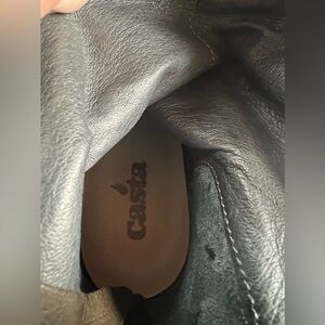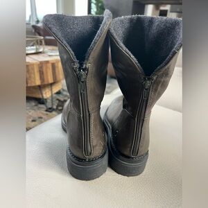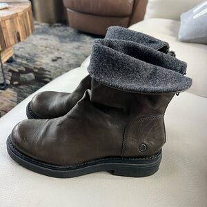 Comfy leather brown boots with a soft gray cuff worn up or down with back zipper. Very stylish & cool bought last winter - worn once!! Too small as I need a size WU 40 & these are size 39 EU