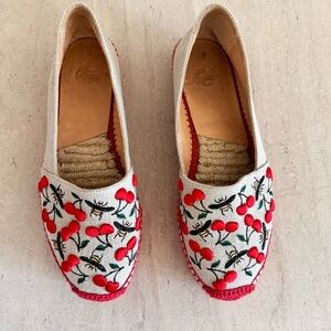 CASTAÑER Cherry & Bees Kenda Merlion Park Embroidered Espadrille Flats Size 39