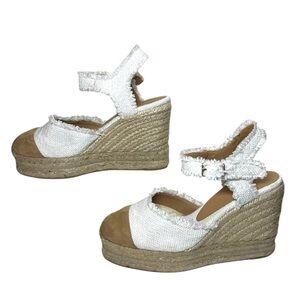 CASTAÑER, Women’s ‘Carla’ Wedge Espadrille Fringed Canvas, White Size 37 IT 7 US