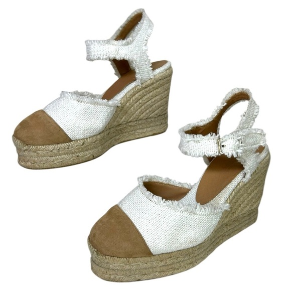 CASTAÑER, Women’s ‘Carla’ Wedge Espadrille Fringed Canvas, White Size 37 IT 7 US