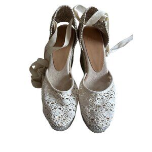 CASTANER Cream Crochet Espadrilles Lace Up Wedges Size 37