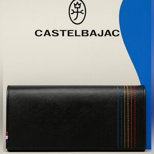 ✨CASTELBAJAC Black Leather Wallet with Rainbow Stitching | Luxury Designer EUC✨