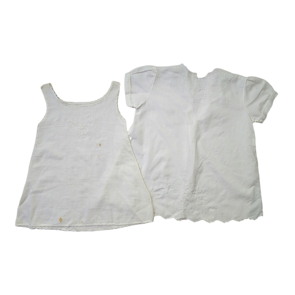 Up for consideration is a preowned vintage 40s baby top set. these garments are delicate, and have lots of life left. under shirt has some staining as shown. size 1 year