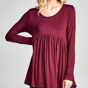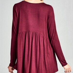 CASUAL LONG SLEEVED BURGUNDY TUNIC TOP 95% RAYON 5% SPANDEX