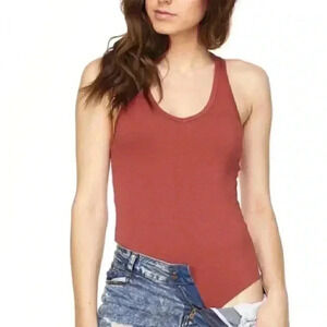 CLAY colored V-Neck, sleeveless BODYSUIT with racer back.