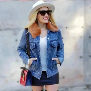 CASUAL DOLLZ Demin Jacket - Removelabe FUR COLLAR