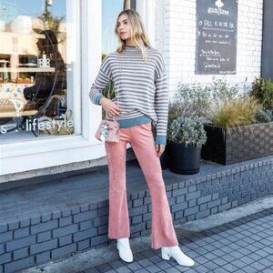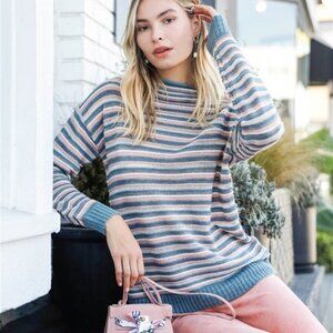 CASUAL DOLLZ Multi Color Woolen Striped Turtle Neck Long Sleeve Loose Fit Sweater top