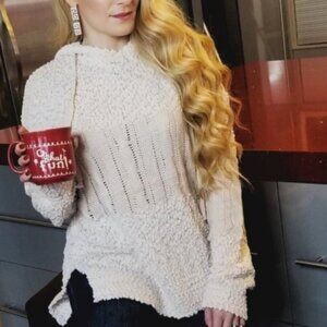 This casual and so comfy knitted sweater hoodie features in a neutral color tone, is so soft and cozy!