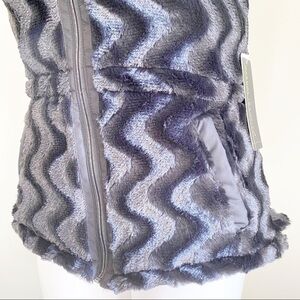 This reversible vest features a fun faux fur wave texture while the reverse is solid and quilted.
