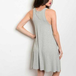 CASUAL GRAY TUNIC DRESS. LACE DETIL NEKCLINE