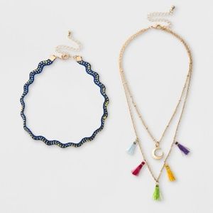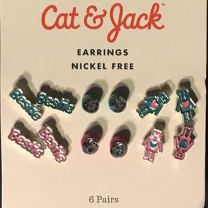 NEW WITH TAGS! Cat & Jack choker set. This set has 2 different chokers that you can wear together or separate. All have claw clasps on them for easy opening. The CAT & JACK "Besties" earring set, 4 pairs; 2 pair say "besties" in pink or green, 2 pair are crystal studs with pink or green around the edges (2 robot pair are missing). These are nickel free and can be a choking hazard to children 3 years and younger. THE PRICE IS FIRM.