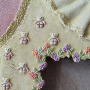 ADORBS! Add a picture of your choosing and hang it in your child's room or any space you wish to be whimsical. White Kitty Cat on top of frame with other tiny little kitties around the sides with dainty flowers.