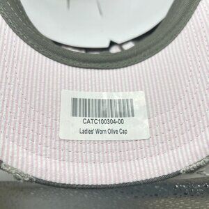 CAT Cap Womens Olive Green Cap Pink Logo Adjustable Strapback Distressed Hat