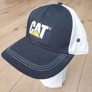 CAT Caterpillar Raised Logo Adjustable Strap Back Curve Bill Style Black Tan Hat