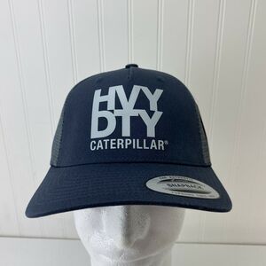 CATERPILLAR Diesel Navy Blue Trucker with Gray Mesh Snapback Hat with Vinyl HVY DTY (Heavy Duty) Logo