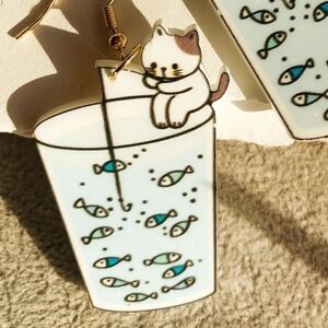 CAT FISHING cute fun whimsical kawaii novelty earrings