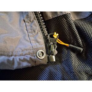 This jacket is black with yellow piping, I have lightened the photos to show details. \
