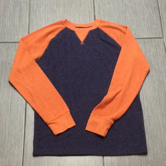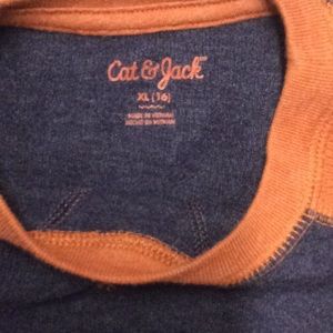 CAT & JACK...BOYS THERMAL LONG SLEEVE SHIRT....NAVY BLUE SHIRT WITH ORANGE SLEEVES...SIZE:XL/16...WORE SEVERAL TIMES...NO RIPS/NO STAINS