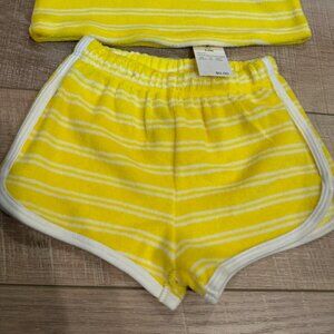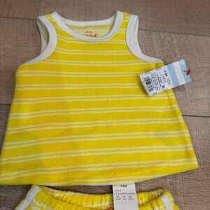 CAT & JACK GIRLS RETRO YELLOW TERRY CLOTH SHORT AND TANK SHIRT SET 3-6 MONTH BAB