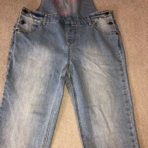 CAT & JACK Girls Embroidered Unicorn Stretch Denim Bib Overalls Sz XL 14-16