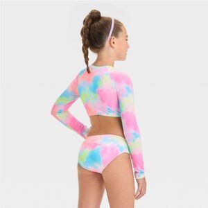 Brighten up swim time with this colorful tie-dye swim set. Perfect for fun in the sun.