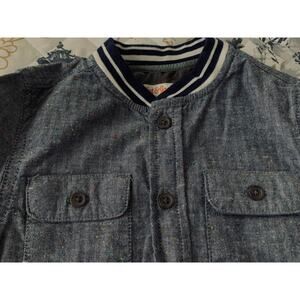 CAT & JACK LONG SLEEVE SHIRT BOYS, 5T GREY, NAVY STRIPED COLLAR, NWOT, 2 POCKETS