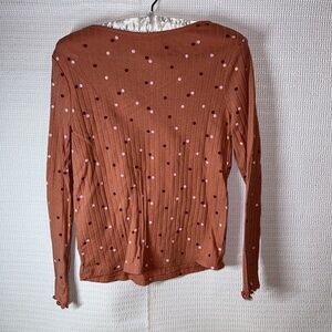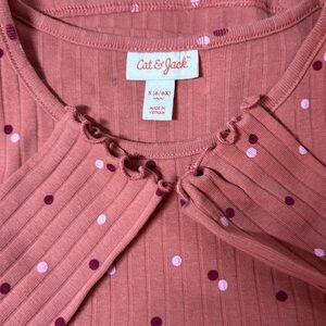CAT & JACK Terracotta Polka Dot Ribbed Long Sleeve Ruffled Girls Shirt S6/6X