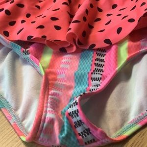 Cat and jack bikini polkadot it on the top vibrant colors on bottoms size medium 7/8 They match well together nylon spandex. Give them a good stretch hand wash line dry there an excellent. 2 piece set 💖💖
