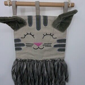 CAT Wall Hanging Textured Animal Natural Room Decor Gray Kitten Wall Art boho