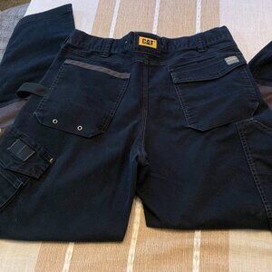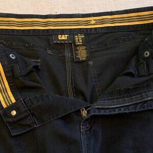 This is a used pair of Mens CAT Workwear pants. They are in great shape except for a hole in one back side pocket. It has been repaired and that pocket is fully functional. Listen, it's not the prettiest repair... but these are work pants, right? You're gonna get them all messed up anyway, and the wonky sewing job gives character!