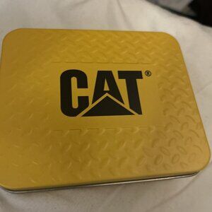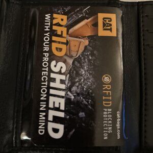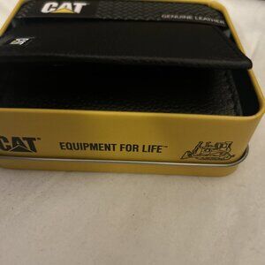 CAT caterpillar men’s black leather trifold wallet w/RFID protection shield Tin