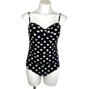 CATALINA Black White Polka Dots Rockabilly One Piece Swimsuit Size M 8 10 Retro