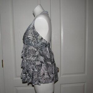 CATALINA Halter Black White Ruffle Swim Top Plus Size XL (16-18)