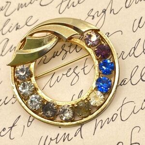 CATAMORE 1/20 12K Gold Filled 1960's Circle Brooch Mother's Rhinestone VTG Pin
