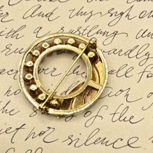 CATAMORE 1/20 12K Gold Filled 1960's Circle Brooch Mother's Rhinestone VTG Pin. Marked 1/20 12K GF on backside. Beautiful Mother's circle brooch measures 1.25". All rhinestones intact. Lovely condition, has been pre-loved and does does normal vintage smudges as expected for age. Circa 1960's. #40-C