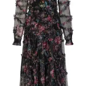 Size L beautiful dress. It does fit more on the fitted tighter side. Never worn ended up getting another one.
