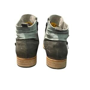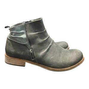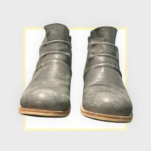 CAT-Caterpillar Women's Gray Leather Ankle Booties Size 8 Denim Zipper Accents